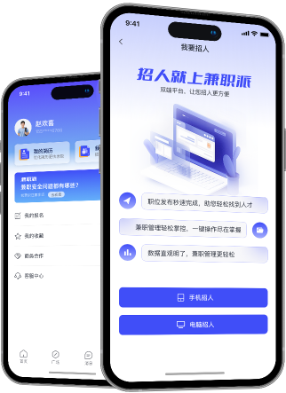 在我们的App中,发布职位、筛选简历、招募人才全程高效快捷!无论你需要临时工还是长期兼职人员,我们让你的招聘需求迅速实现,马上下载App,让招聘变得简单高效!